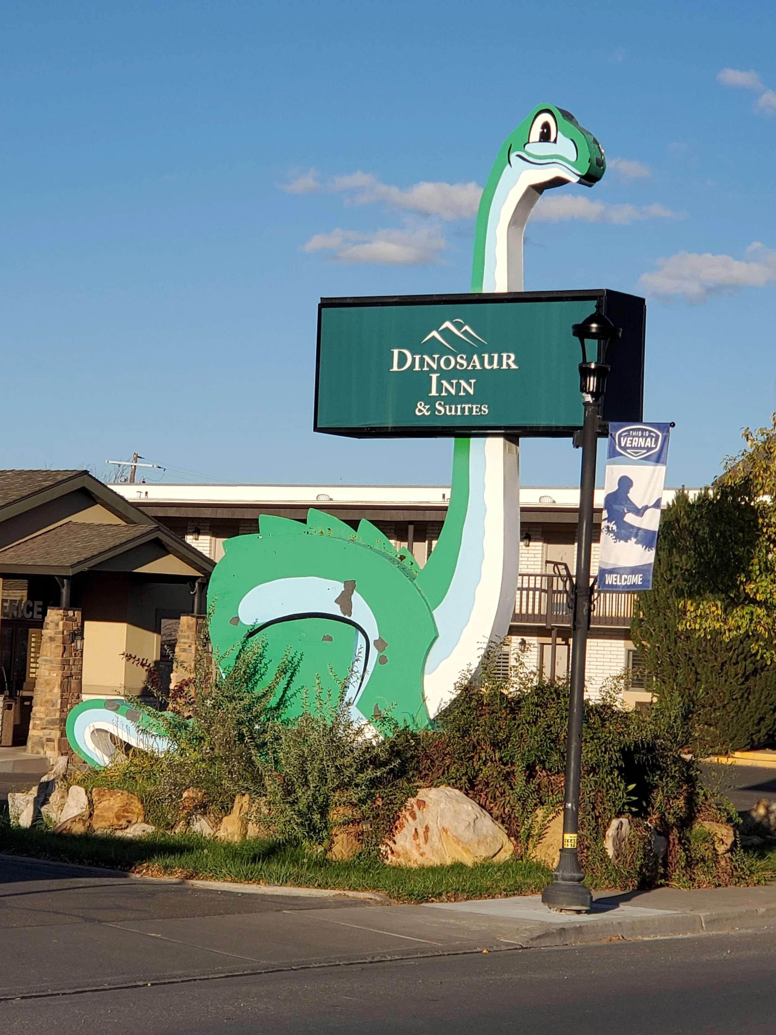 Vernal itself is a no-nonsense working town, but it has good restaurants, grocery stores, and a range of modest motels along the main strip. We stayed at the Dinosaur Inn & Suites, an older but clean strip motel with an excellent breakfast each morning and a small on-site laundry—always a bonus on a long trip. Several restaurants and gift shops were within walking distance, and I’ll admit I love motels where you can park right outside your door for easy loading and unloading.
