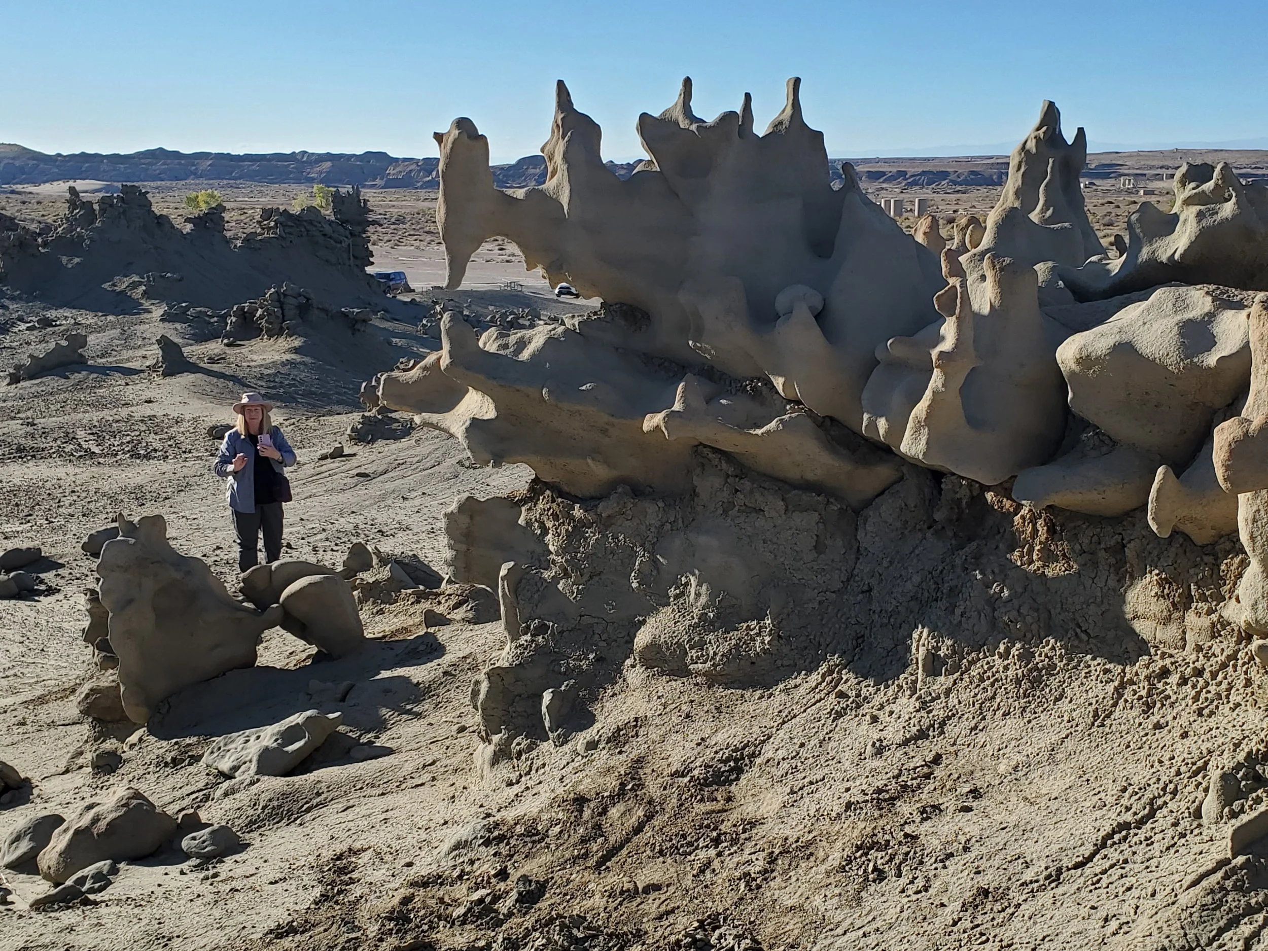 One afternoon we also drove more than an hour south of Vernal to visit Fantasy Canyon, a little-known and highly unusual area recommended by a local shop owner. Though not part of Dinosaur National Monument, it’s set amid gas pipelines and oil derricks and features a compact collection of bizarre rock formations. Shaped on an ancient seabed millions of years ago, the formations resemble dripping sand sculptures—many evoking strange animals and humanoid figures. It was eerie, fascinating, and unlike anything else we saw on the trip.